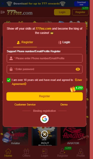 You can play this game by making an official account on this app and getting full access to all features, and also getting money into your account. Put your personal information correctly and save it for future use. Playing the 777tez game is not a difficult job, but you need patience.